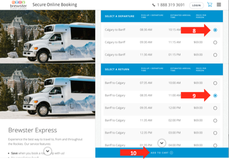 - Select going to “Banff” and