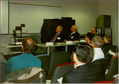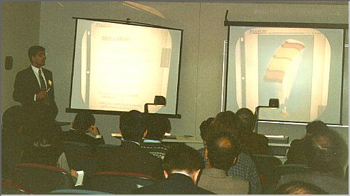 A dinner honoring speakers and panel members was held the night of Tuesday, April 2, at the Marquette Hotel. Davis, the host for the event, along with Hughes, thanked those who organized and participated in the symposium for their help in making it a success. On Wednesday, the final day of the Symposium, four sessions were held. The first session of the day was chaired by Tabata and included talks on "Meshless Methods and Coupled Meshless-Finite Element Methods," by Ted Belytschko of Northwestern University, followed by "A Wavelet Based Numerical Method," by Leland Jameson of Mitsubishi Heavy Industries, and finally a talk given by Yasuhiro Matsuda of Shinshu University on "Proposal of the Modified Galerkin Method for Unsteady Two-Dimensional Viscous Fluid Flow." Belytschko chaired Session 10, which began with a presentation by Walter Sturek of ARL on "Compressible Turbulent Viscous Modeling in an Adverse Pressure Gradient." Sturek's talk was followed by Takahiro Yamada of the Tokyo Institute of Technology, speaking on "A Bubble Element for Compressible Euler Equation," and Shoichi Fujima of Hiroshima University, who presented "An Application of Mortar Element Method to Flow Problems in the Primitive Variables." Sessions 11 and 12, chaired by Oshima and Noboru Kikuchi of the University of Michigan, were the final sessions of the Symposium. Session 11 included a talk given by Kikuchi on "A Homogenization Method for Fluid Flow Analysis Through Porous Media," followed by a talk on "Multiresolution Reproducing Kernel Particle Methods," by Wing Liu of Northwestern University. The final session of the symposium included presentations on "Finite Element Simulation of Vacuum Arc Remelting," by David Gartling of Sandia National Laboratories, "Die Swell Calculation by Finite Element Methods," by Yoji Shimazaki from Tokai University, and "Applications for Distributed Shared Memory in Structured and Unstructured Meshes," by Jerry Clarke (AHPCRC-Minnesota Supercomputer Institute, Inc.) The Symposium ended with closing remarks by Tezduyar with the announcement that the next Symposium will be held in Tokyo and is tentatively scheduled for April 1998. |