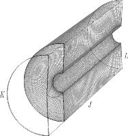 Out of the two computation-intensive stages of the code, the RHS formation yields itself to parallelization most easily. This is a volume computation, where each grid point is operated on independently, with only older values at neighboring points required to complete the computation. The entire set of zone cells can be distributed over the available processing elements (PEs) in an arbitrary manner. However, for the sake of subsequent solver computations, it makes sense to decompose only K and L grid dimensions, leaving an entire J dimension associated with a single PE. The K-L plane is mapped onto a rectangular grid of all PEs. To avoid repetition of interprocessor transfers, each rectangular portion of the K-L plane also contains 2 layers of "ghost" points which track the two closest sets of values in the subgrids belonging to neighboring PE. The parallelization of the solver sweeps is not as straightforward. The algorithm requires sequential processing in the J direction, and can also be simultaneously parallelized in both K-L directions only at a great added computation cost, e.g. via a cyclic reduction algorithm. An alternative method is to accept serial treatment of the J and L directions (J and K for J- sweep), and devote all PEs to parallelizing the K dimension (L for J- sweep). This approach has the obvious disadvantage, since the scalability is not maintained as the number of PEs exceeds either the NK or NL zone dimensions. In typical computations however, the number of PEs and the zone dimensions are matched so that the problem does not arise. Therefore, for the solver sweeps the desired data distribution has the entire J and L dimensions associated with a single PE, and the K dimension decomposed among all available PEs for the J+ sweep; and J and K dimensions associated with a single PE and the L dimension distributed for the J- sweep. This requires repeated reshaping of a small number of arrays between the original and two solver-specific layouts (Figure 2). A number of smaller parallelization issues had to be resolved as well, including parameter reading and broadcasting them among PEs, efficient disk I/O, and exchange of boundary data between zones. Implementation and Timing