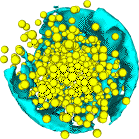 AHPCRC Bulletin: Summer 1997 - Volume 7 Number 33D Simulation of Fluid-Object Interactions at a New Level-1000 SpheresAndrew Johnson and Tayfun Tezduyar (AHPCRC-UM)Fluid-Object Interactions is one of the "Targeted Challenges" in the HPC research activities of our Team for Advanced Flow Simulation and Modeling (T*AFSM) at the AHPCRC. Our goal is to build a set of advanced methods for fast and accurate 3D simulation of this class of flow problems. This serves two purposes: a) the methods developed are opening new doors to science and technology involving fluid-particle interactions; b) our computational research for this class of extremely challenging simulations is giving us a cultivating ground for new HPC methods for flow simulations in general, including other classes of challenging flow problems.The source of the complexities involved in this class of problems is that the motion of the objects is determined by their interaction with the surrounding fluid, and the behavior of the surrounding fluid is dependent upon the motion and position of the objects. Furthermore, the objects, in addition to interacting with the surrounding fluid, interact with each other by colliding and forming groups. They may also collide with the solid surfaces that might be present at the external boundaries of the fluid-object system. In our computational model, the fluid dynamics is governed by the time-dependent, 3D Navier-Stokes equations. The equations of motion govern the 3D translational and rotational dynamics of the objects. Fluid forces acting on the objects are calculated from the computed flow field. These equations need to be solved in a coupled fashion. This class of problems is a subset of a larger class flow problems with moving boundaries and interfaces. In this larger class of problems, as far the fluid dynamics is concerned, the spatial domain changes in time, and a formulation that can handle this change accurately is essential. Fluid-object interactions become more challenging as the number of objects or the Reynolds number increases, because both increases demand larger number of mesh points for accurate computations. Beyond some point, the problem size becomes too large to carry out the simulation in a reasonable amount of time on single-processor or shared-memory computing platforms. This adds the challenge of implementing the entire method on a distributed-memory computing platform. This includes handling the changes in the spatial domain-as large number of objects move around-by updating the mesh efficiently. We are now at a level where we can carry out simulation of 1000 spheres falling in a liquid-filled tube at Reynolds number 10. Prior to this simulation with 1000 spheres, in September 1994, we completed four cases of 3D simulations with the number of spheres ranging from two to five. The Reynolds number for a single sphere was 100. This work was reported in [1]. The objective was to compare the computed results to those observed experimentally. In June 1996, we completed the simulation of two cases of 101 spheres: with the size of the spheres random in one case and uniform in the second. The Reynolds number for a single sphere was 100. The methods-which were more advanced than those used for earlier simulations involving an order of magnitude less spheres-and results were reported in [2]. The mesh sizes during those simulations reached 1.2 million tetrahedral elements, resulting in about 2.6 million coupled, nonlinear equations to be solved every time step.