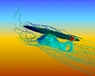 Tyann Osborne and Mark McKelvin (CAU) worked on a project involving flow simulation around simplified helicopter models. This project used flow simulation software developed at the AHPCRC by the Team for Advanced Flow Simulation and Modeling (T*AFSM). The geometric modeling and mesh generation were carried out by using a software which also was developed at the AHPCRC by the T*AFSM. These computations were done on the CRAY T3D. In addition, the students tested a new geometric modeling package being developed at the AHPCRC and provided feedback to the developers on functionality and usability. The flow simulation project was supervised by Shahrouz Aliabadi of the AHPCRC-CAU.