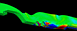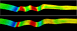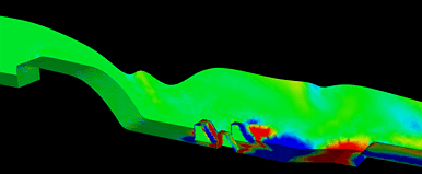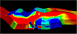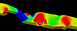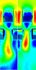 - The flickering "plume" patterns formed by the x-velocity between the obstacles have