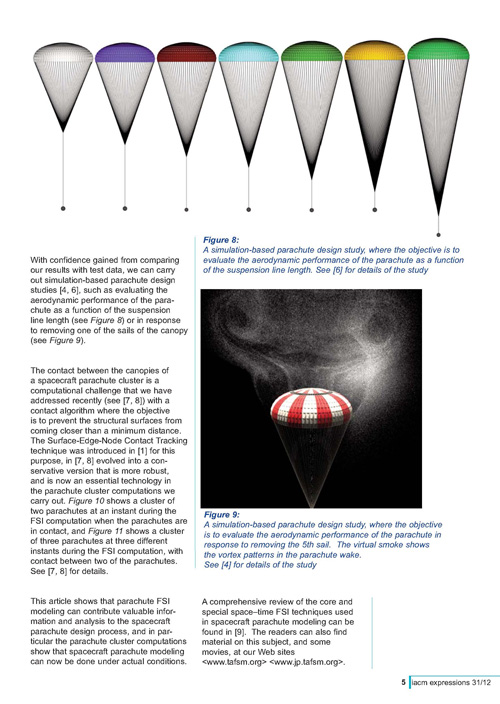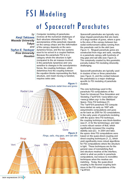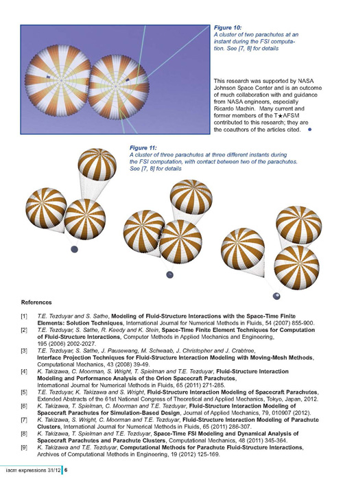 References in the Article1. T.E. Tezduyar and S. Sathe, "Modeling of Fluid-Structure Interactions with the Space-Time Finite Elements: Solution Techniques", International Journal for Numerical Methods in Fluids, 54 (2007) 855-900, doi: 10.1002/fld.1430.2. T.E. Tezduyar, S. Sathe, R. Keedy and K. Stein, "Space-Time Finite Element Techniques for Computation of Fluid-Structure Interactions", Computer Methods in Applied Mechanics and Engineering, 195 (2006) 2002-2027, doi: 10.1016/j.cma.2004.09.014. 3. T.E. Tezduyar, S. Sathe, J. Pausewang, M. Schwaab, J. Christopher and J. Crabtree, "Interface Projection Techniques for Fluid-Structure Interaction Modeling with Moving-Mesh Methods", Computational Mechanics, 43 (2008) 39-49, doi: 10.1007/s00466-008-0261-7. 4. K. Takizawa, C. Moorman, S. Wright, T. Spielman and T.E. Tezduyar, "Fluid-Structure Interaction Modeling and Performance Analysis of the Orion Spacecraft Parachutes", International Journal for Numerical Methods in Fluids, 65 (2011) 271-285, doi: 10.1002/fld.2348. 5. T.E. Tezduyar, K. Takizawa and S. Wright, "Fluid-Structure Interaction Modeling of Spacecraft Parachutes", Extended Abstracts of the 61st National Congress of Theoretical and Applied Mechanics, Tokyo, Japan, 2012 6. K. Takizawa, T. Spielman, C. Moorman and T.E. Tezduyar, "Fluid-Structure Interaction Modeling of Spacecraft Parachutes for Simulation-Based Design", Journal of Applied Mechanics, 79 (2012) 010907, doi: 10.1115/1.4005070". 7. K. Takizawa, S. Wright, C. Moorman and T.E. Tezduyar, "Fluid-Structure Interaction Modeling of Parachute Clusters", International Journal for Numerical Methods in Fluids, 65 (2011) 286-307, doi: 10.1002/fld.2359. 8. K. Takizawa, T. Spielman and T.E. Tezduyar, "Space-Time FSI Modeling and Dynamical Analysis of Spacecraft Parachutes and Parachute Clusters", Computational Mechanics, 48 (2011) 345-364, doi: 10.1007/s00466-011-0590-9. 9. K. Takizawa and T.E. Tezduyar, "Computational Methods for Parachute Fluid-Structure Interactions", Archives of Computational Methods in Engineering, 19 (2012) 125-169, doi: 10.1007/s11831-012-9070-4. |